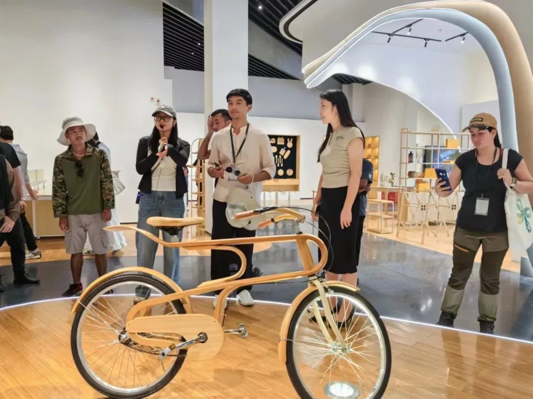 共建“一帶一路”國家“以竹代塑”科技創新研修班學員在邵武“竹立方”生態科創館欣賞竹制自行車。(受訪者供圖)