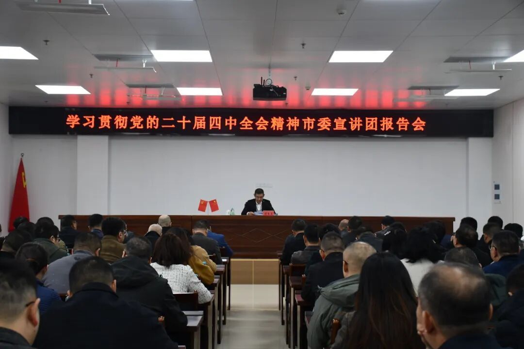 11月19日,學(xué)習(xí)貫徹黨的二十屆四中全會(huì)精神市委宣講團(tuán)在市國(guó)資系統(tǒng)開(kāi)展宣講。市委宣講團(tuán)成員,市國(guó)資委黨委書(shū)記、主任胡春勇作宣講報(bào)告。